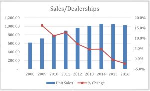 For most dealers, the industry has been booming in the years following the Great Recession. Consumers purchased more cars from fewer dealers which resulted in robust profitability.[1] [2]